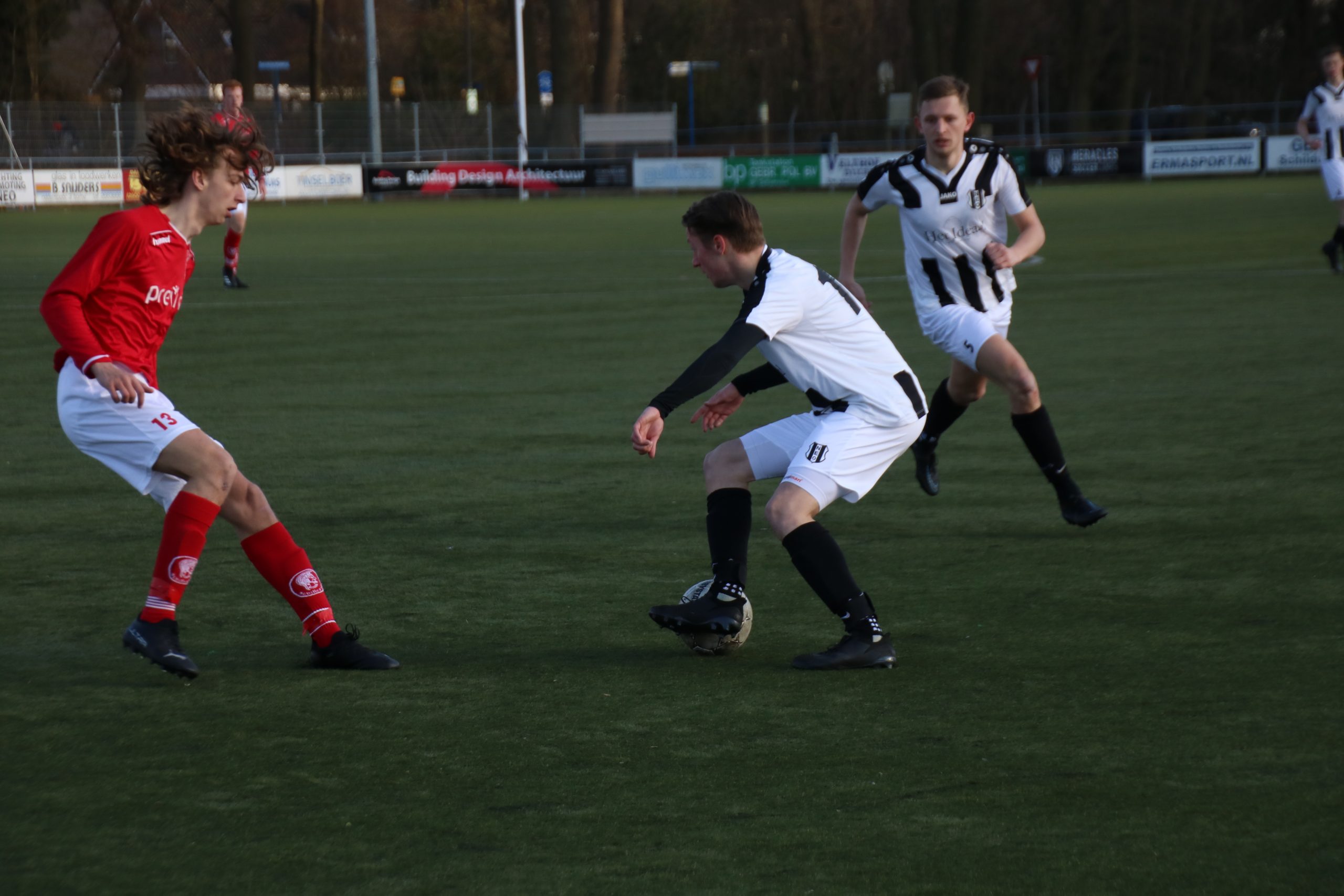 Dat deed hij veel te fors en zijn tegenstander belandde pijnlijk tegen de reclameborden. Scheidsrechter Hoffmann beoordeelde de inzet als buitensporig en trok de rode kaart, een hard gelag voor de Bornerbroeker. NEO won derhalve dik verdiend van Achilles, dat wellicht nog kampte met de naweeën van het midweekse duel tegen ATC ’65. Lang leek het erop dat naaste concurrenten Bon Boys, Grol en Schalkhaar punten zouden verspelen, maar de in de absolute slotfase wisten zowel Bon Boys als Schalkhaar hun duel toch te winnen.