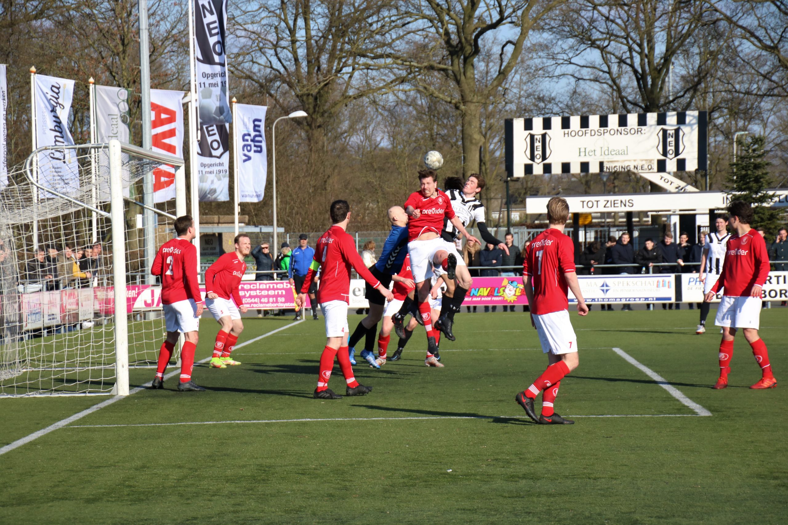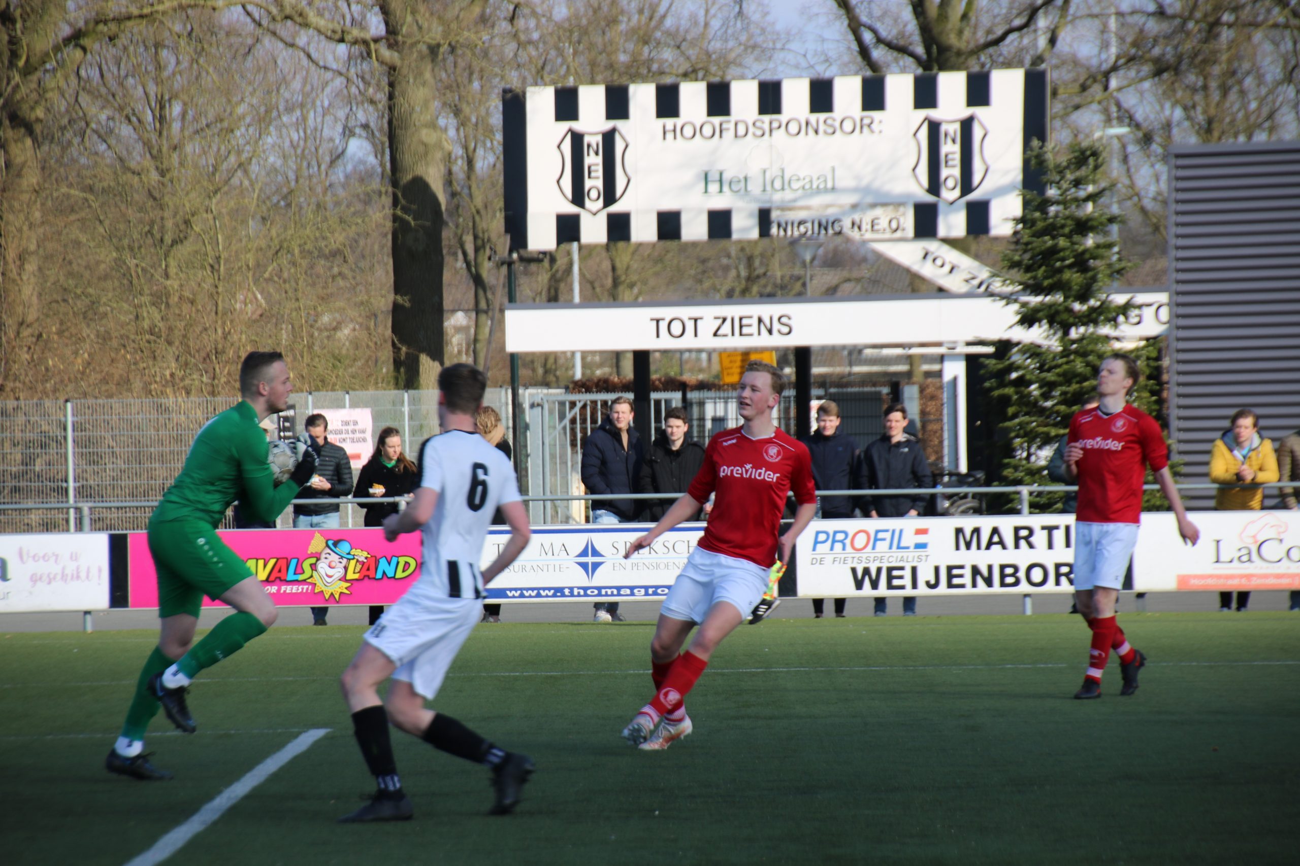 NEO bewaarde de mooiste goal voor het laatst. Een vloeiende aanval over links resulteerde in alweer een voorzet op maat van Wessel Bom. Bij de tweede paal stond Jochem Stam paraat om de bal vallend binnen te koppen: 4-0, een plaatje van een goal. De laatste tien minuten hadden schriftelijk afgedaan kunnen worden, ware het niet dat de wedstrijd enigszins in mineur eindigde. De geweldig spelende Mauro Lohuis, voor het eerst sinds lange tijd weer op het middenveld geposteerd, probeerde in de slotseconde van de wedstrijd bij de achterlijn een duel te winnen van Jorik Weijerink.