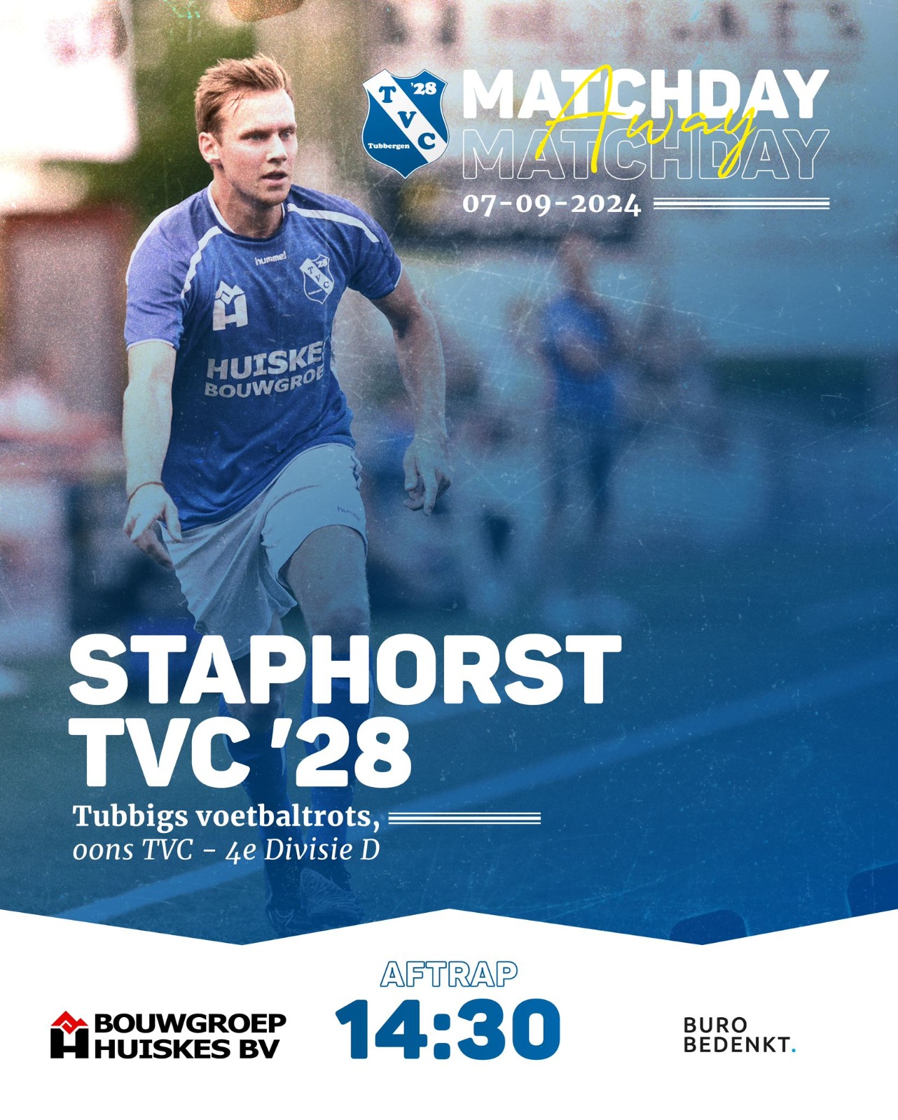 Komend weekend reist het vlaggenschip van TVC ’28 naar Staphorst voor de confrontatie met de gelijknamige voetbalclub. Een historische ontmoeting; niet eerder in de geschiedenis kruisten de ploegen de degens. Hartstikke leuk natuurlijk zo’n nieuw voetbalavontuur en dan ook nog eens in een pittoreske omgeving. De klassieke Staphorster ambiance van geloof, kerk, klederdracht… zal op het voetbalveld echter nauwelijks voelbaar zijn, al doen bezoekers er goed aan geen godslasterende oprispingen te ventileren. Respect scoort zowel op als het buiten het veld het hoogst!