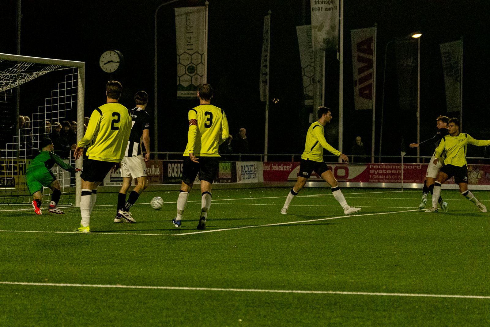 De laatkomers hebben waarschijnlijk de eerste twee goals gemist, want al na drie minuten was het 1-1. Eerst kopte Jasper Scholten een mooie pass van Jesse Keur over de verbouwereerde David Arun, maar vlak daarna scoorde Boudewijn Barendse uit de rebound, nadat Leco Zeevalkink een lastige afstandsschot van Koen Beuting niet voldoende had kunnen verwerken.
