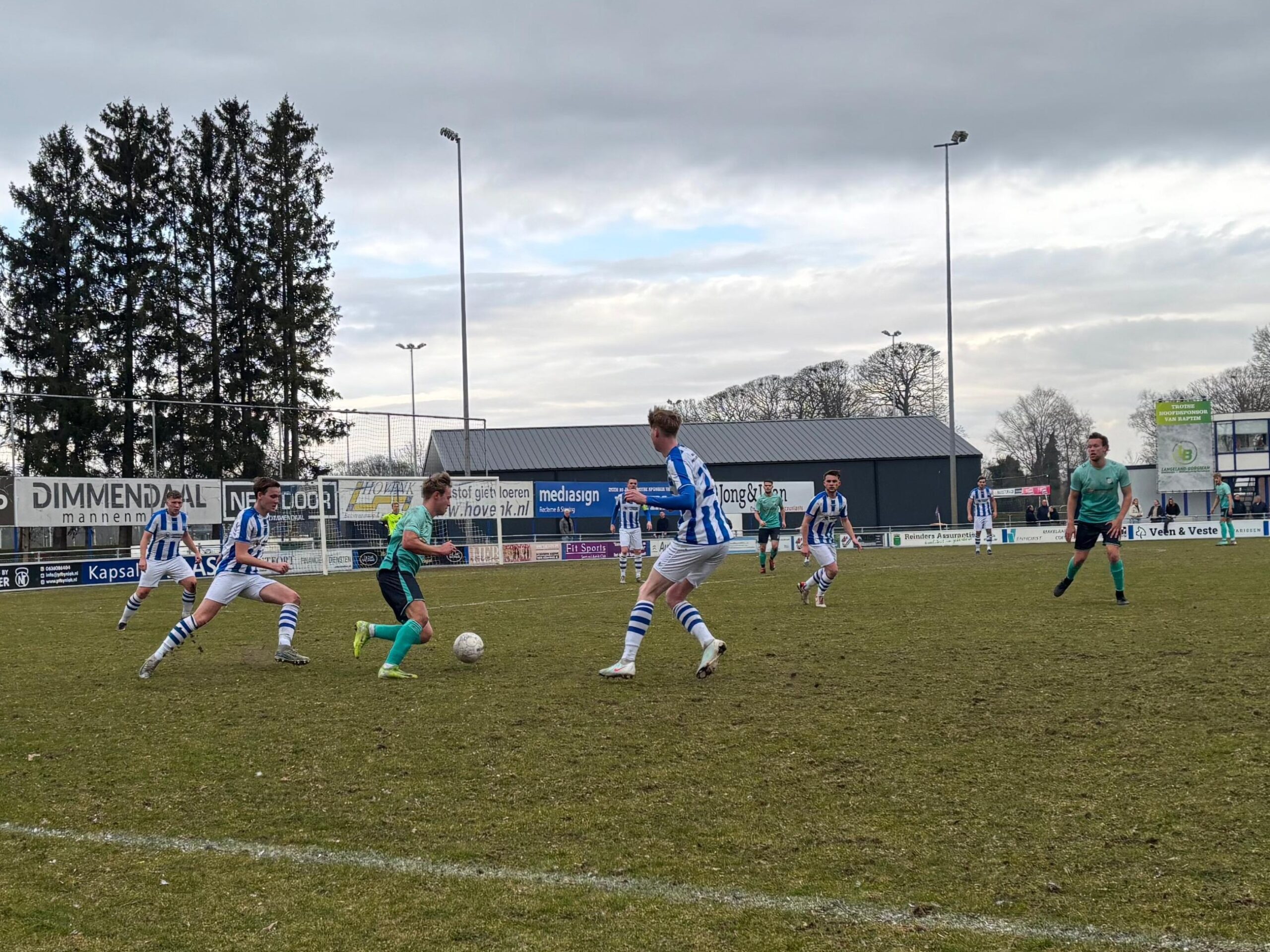 Na de thee werd het spel slordiger en kwam Raptim beter in de wedstrijd. In de 52e minuut kreeg Raptim een levensgrote mogelijkheid op de gelijkmaker. Aanvaller Bram Maes werd in de diepte gestuurd en gaf de bal goed breed op de mee naar voren gelopen Bjorn Wesseling. Wesseling had het vizier niet op scherp en schoot naast.