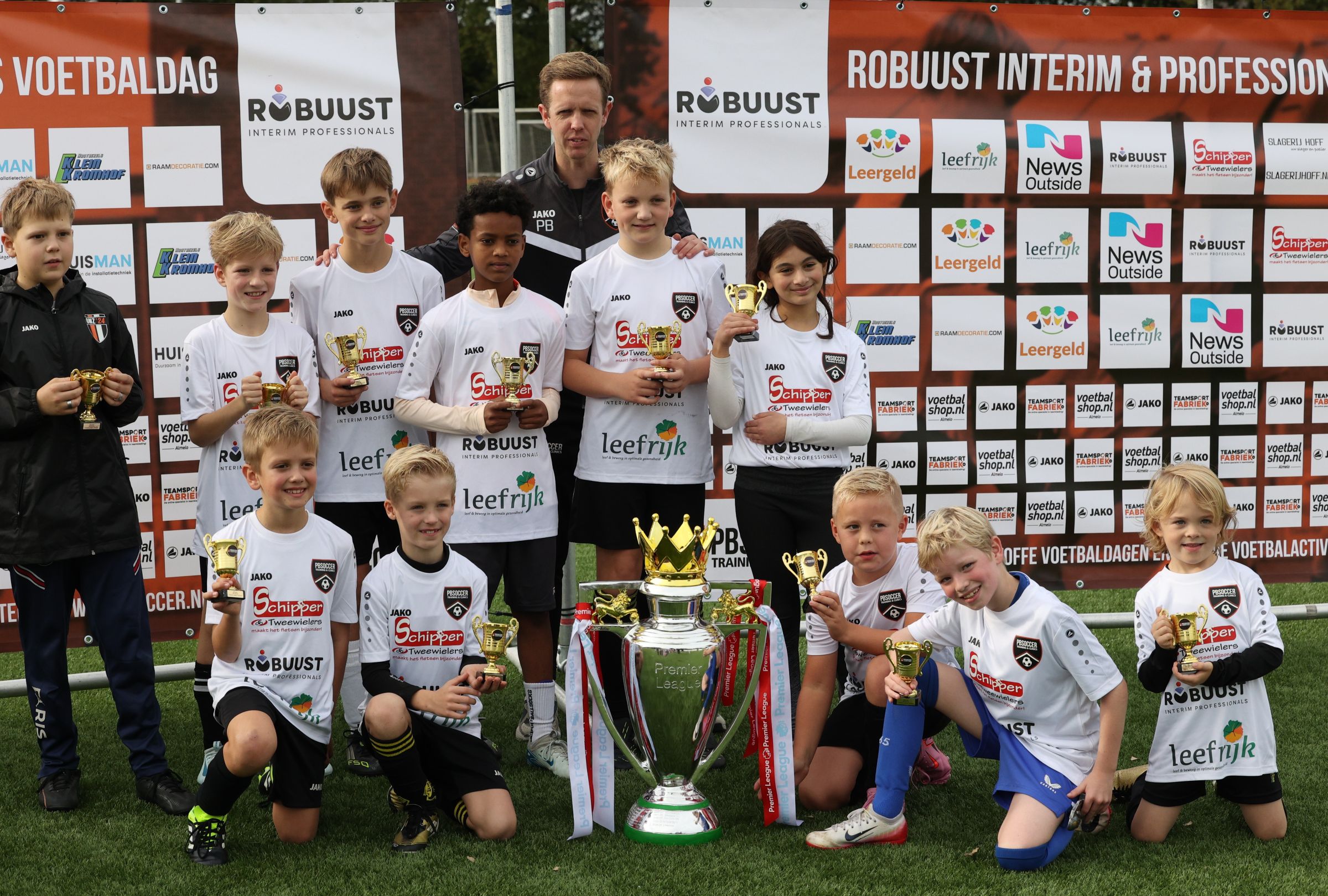 Om 12.00 uur stond er dagelijks een lunch klaar in de kantine. Broodjes, ranja, fruit…aan alles is gedacht. Vervolgens werd het middagprogramma afgewerkt middels het toernooi om de Premier League CUP en FA Cup. De groepen werden verdeeld in 2 verschillende leeftijdscategorieën zodat er geen grote verschillen ontstonden qua leeftijd. De finalisten kwamen wederom door de rook en met een hymne het hoofdveld op. Het werden spannende finales, waarna de cups werden uitgereikt aan de winnaars alsmede de prijzen voor de verschillende leeftijdscategorieën bij de diverse oefeningen ’s ochtends. Niemand ging met lege handen naar huis. Alle deelnemers kregen een goodiebag met daarin de groepsfoto van ’s ochtends op A4 formaat, een bidon en een getekend profcontract van PB Soccer. Daarnaast kregen alle deelnemers natuurlijk ook het voetbalshirt waarin ze speelden die dag mee naar huis. Al met al een onvergetelijke belevenis voor de kinderen die aan een Voetbaldag meededen. Mooi een dag sportief in de buitenlucht en nieuwe vriendschappen waren het gevolg!