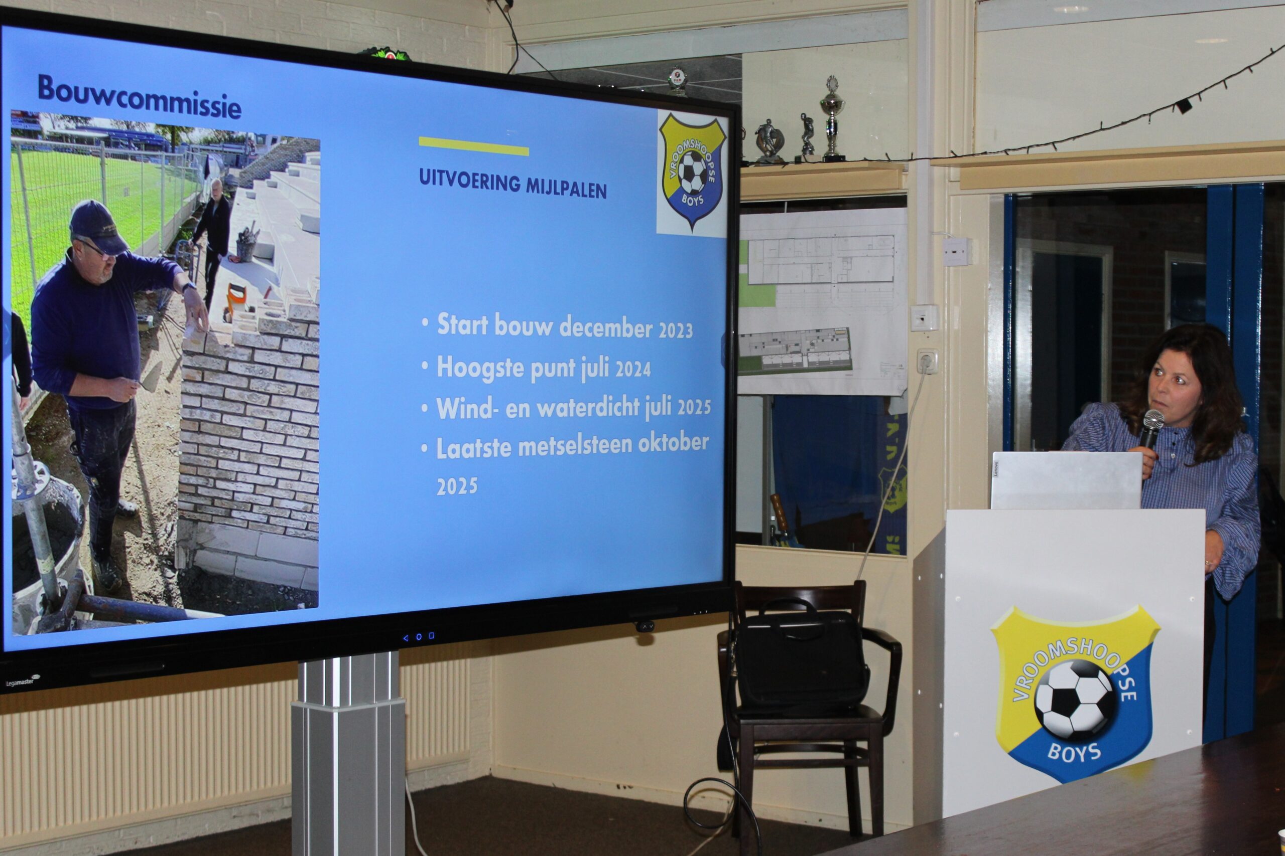 In de uit 1976 stammende kantine ’t Flierhuus werd voor de laatste keer de jaarvergadering van de voetbalvereniging Vroomshoopse Boys gehouden. Dat werd duidelijk uit de woorden van Sabine Elferink namens de bouwcommissie. Naast het gehele bouwproces werd de aanstaande finale afbouwfase van het nieuwe clubhuis uitvoerig toegelicht. Het metselwerk zit erop dankzij de hartverwarmende inzet van Boys-vrijwilligers met gebruik van maar liefst 32.000 bakstenen.