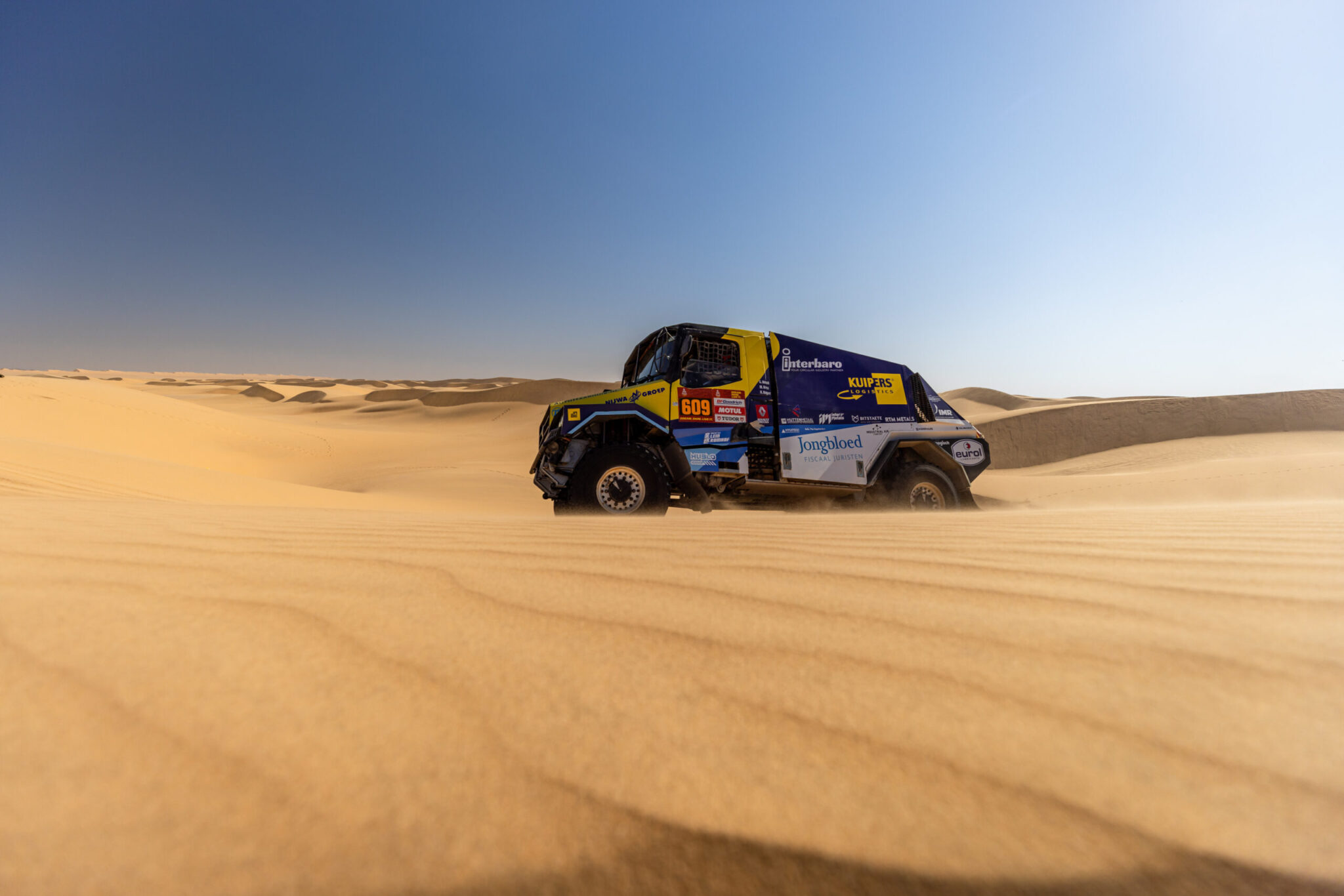 Naast de te verwaarlozen vijftig kilometer aan verbinding, staat er morgen een proef van 420 kilometer op het programma. De tiende etappe is het tweede deel van de marathon stage en het wordt een echte duinendag. Er kan dus heel veel gebeuren, want duinen rijden is een bijzonder fenomeen. Het feit dat de beide trucks van Kuipers-Jongbloed Hybrid weer samen zullen optrekken is wederom een groot voordeel ten opzichte van de concurrenten die allen nog strijden om een eigen goede klassering in het klassement. Wat dat betreft heeft Kay Huzink een absolute meesterknecht in zijn oom en leermeester Gert.