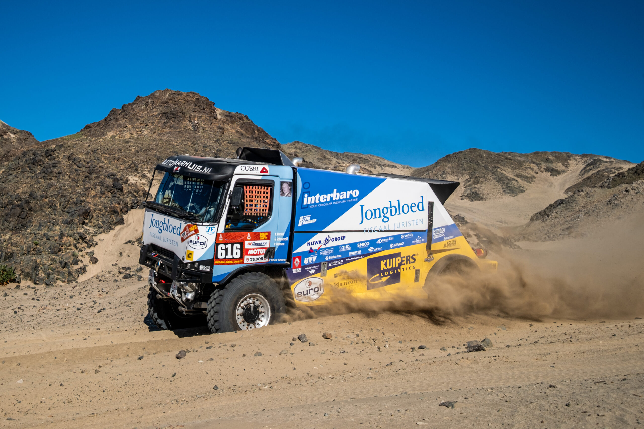 Voor debutant Kay Huzink is de finish halen het grote doel. Dat hij vandaag met Rob Buursen en Gait Schoneveld een zesde tijd wist te noteren is dan ook een grote bonus. Kay: “Vandaag begonnen met een korte proloog van 22 kilometer. De proef was erg snel maar er zaten wel een aantal verradelijke passages in. Een mooi tempo kunnen vinden, niet te gek gedaan en uiteindelijk als zevende kunnen finishen. Door een tijdstraf voor macik zijn we nog een plekje opgeschoven en kunnen we morgen als 6zesde truck aan stage één beginnen.”