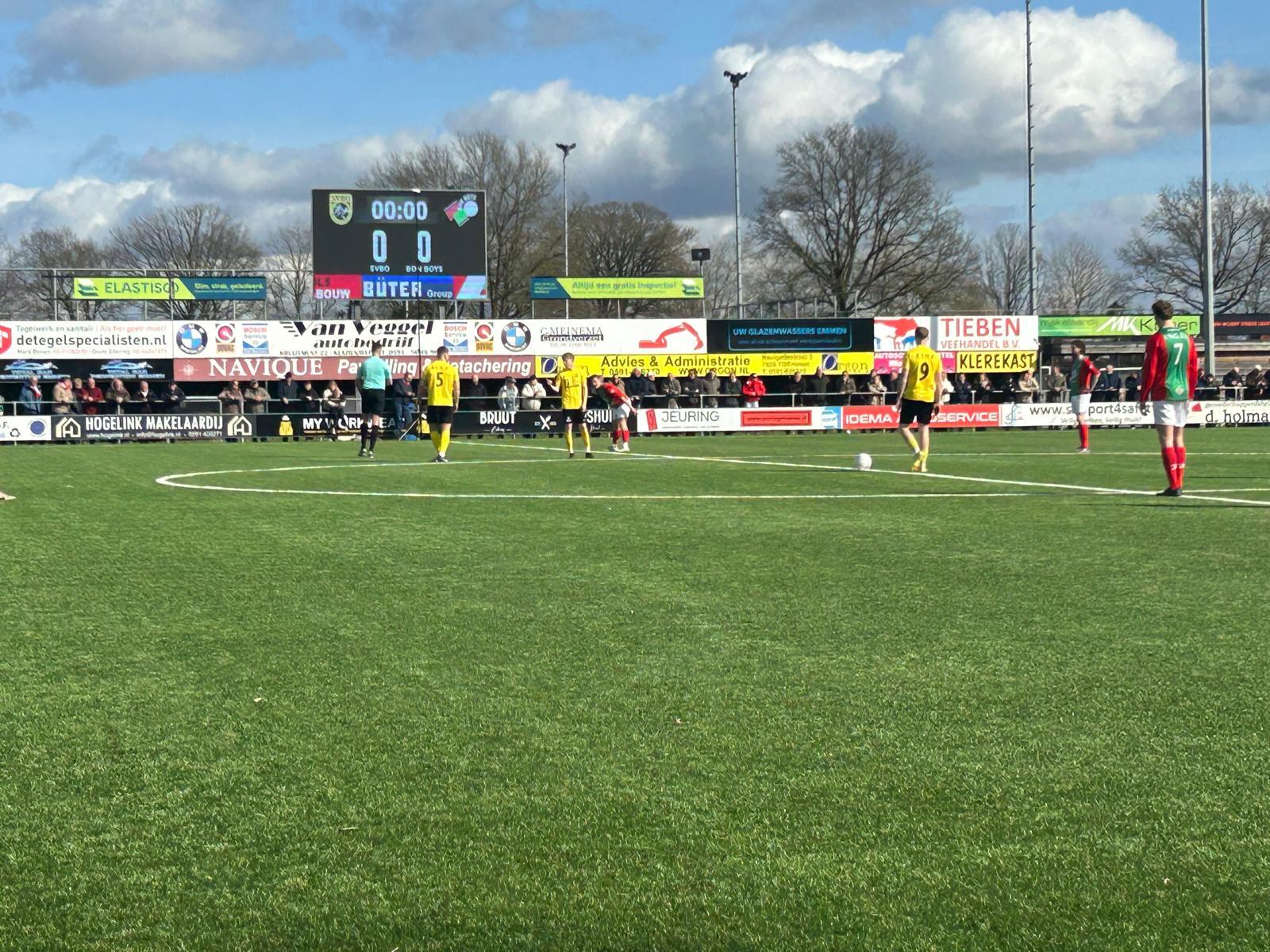Halverwege de eerste helft kwam Bon Boys verdiend op voorsprong. Na een prima actie en voorzet van Jeffrey Zijlstra schoot Tom ter Hogt van dichtbij zijn tiende treffer van het seizoen binnen: 0-1. Niet veel later raakte Koen Somhorst na een vlot uitgevoerde aanval de kruising.