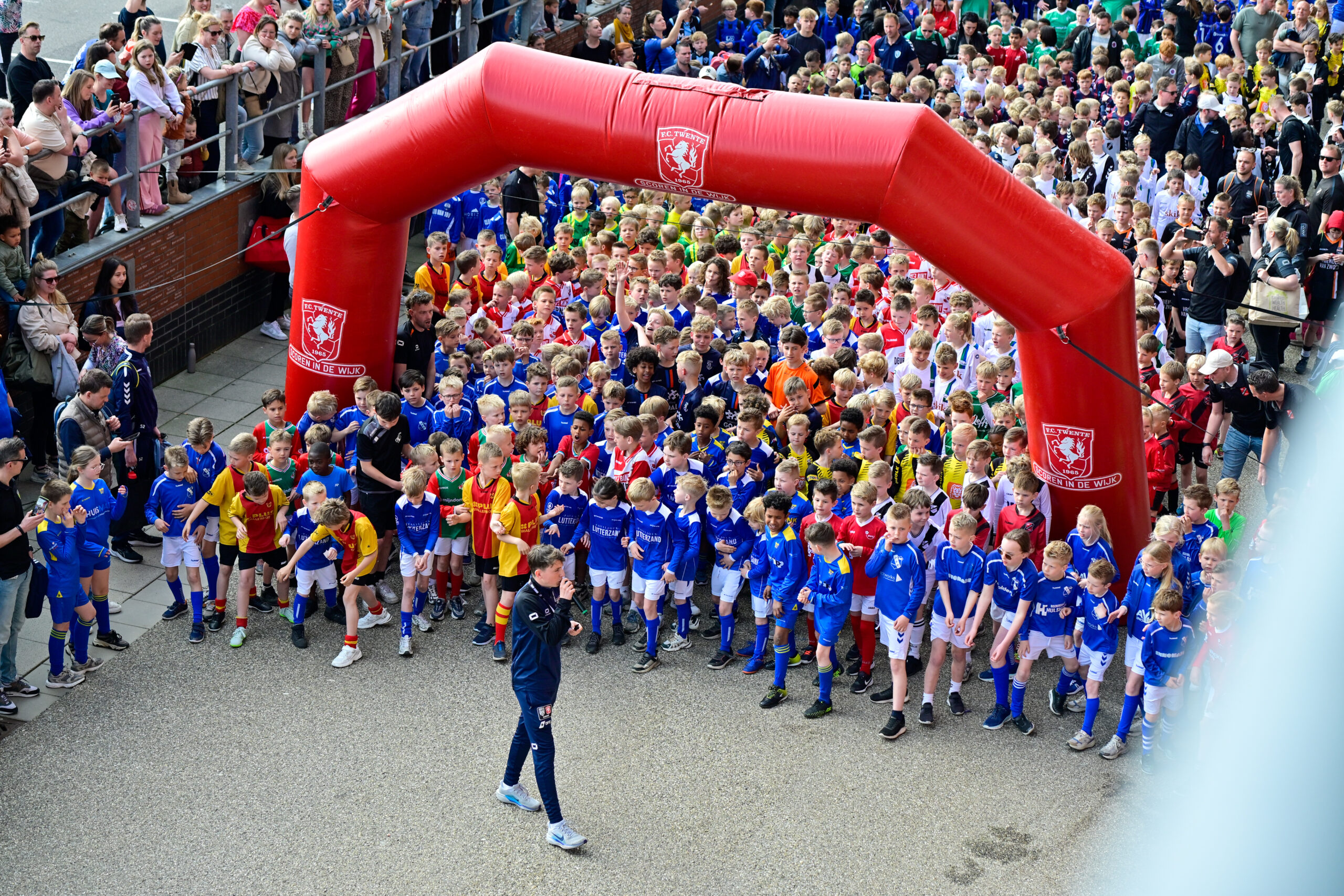Gistermiddag stond de 1e editie van de DFDS Kidsrun bij De Grolsch Veste in Enschede op het programma. Een kleine 1.500 kinderen deden hieraan mee vanuit 33 verschillende amateurvoetbalverenigingen in en om Twente. De maand voorafgaand aan dit evenement kreeg van iedere deelnemende voetbalvereniging de kinderen een persoonlijke flyer met een QR-code. Met die link werd er (digitaal) getracht sponsoren / donateurs te zoeken bij familie, buren, vrienden, kennissen, bedrijven etc…Al met al werd er een geweldig bedrag van € 132.000 opgehaald. Net als bij De Grote Clubactie gaat er 20% van dit bedrag terug naar Clubplan uit Friesland en het Regioplan (onderdeel van de FC Twente/Heracles Academie) vanwege de gemaakte kosten.